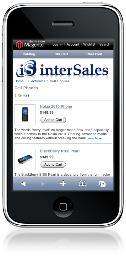 Ihr Shop auf dem iPhone und auf anderen mobilen Endgeräten: einfach mit speziellem Template-Satz, ohne Änderungen an der Technik. Nahtlos, innovativ, budgetschonend.